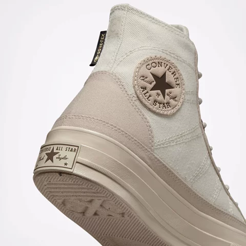 Das Chuck 70 GORE-TEX High Top ist ein ikonischer Stil mit einem explorativen Gefühl und bringt Outdoor-Ideale in das ursprüngliche Design der 1970er Jahre. Der Counter Climate-Stil verfügt über ein wasserabweisendes Canvas-Obermaterial, eine Gummi-Außensohle sowie ein wasserdichtes GORE-TEX-Futter, das dich trocken hält. Von Stiefeln inspirierte Canvas-Overlays sowie nicht feuchtigkeitsableitende Schnürsenkel tragen zur Wanderatmosphäre bei.