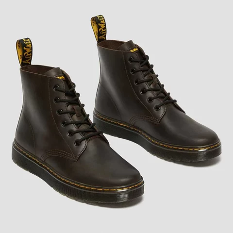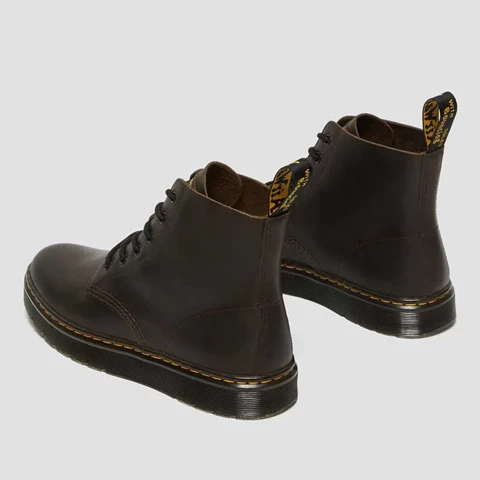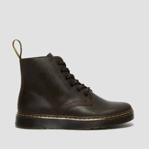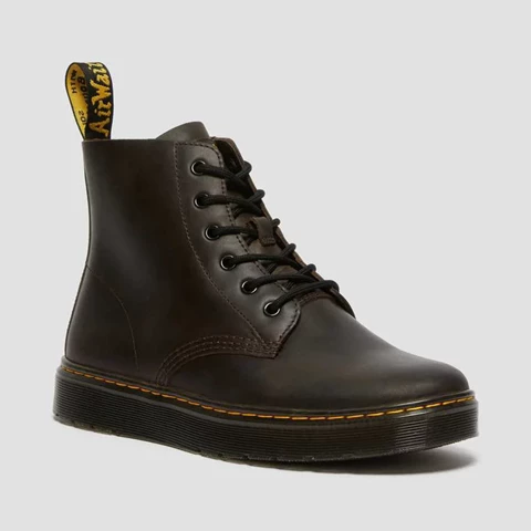 A stripped-back evolution of our ankle-height 6-eye 101 boot — with minimised detailing for understated everyday wear. Made from full-grain Lusso leather, the 6-eye Thurston Chukka boot is detailed with tonal eyelets for low-profile impact. Built on our comfortable flat Vibe sole, the Thurston Chukka is marked with yellow stitching, a branded tongue and a subtle AirWair pull tab.