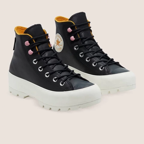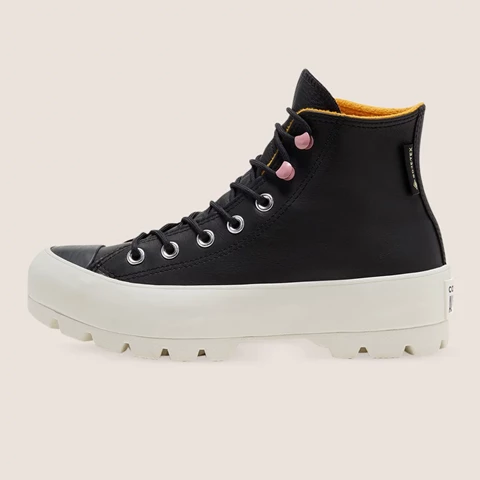 BRAVE THE COLD. A weather-ready re-imagination of the classic Chuck Taylor All Star, this sneaker-boot hybrid is made for taking on winter in style. A lugged outsole adds height and traction, while hiker-inspired laces and hardware bring an outdoor edge. Best of all, waterproof GORE-TEX materials and a cosy fleece lining help keep you warm and dry, whatever the weather.