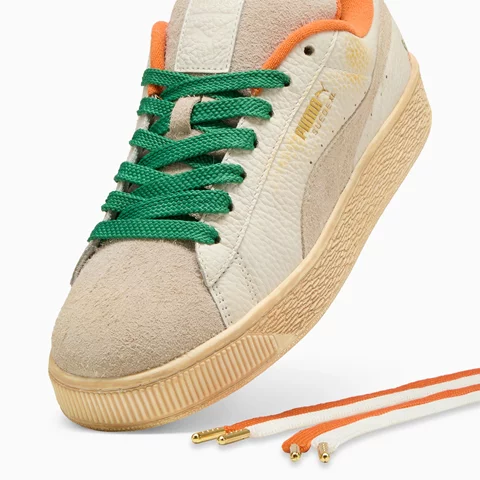 Wir haben uns mit der Streetwear-Marke Carrots by Anwar zusammengetan, um diese verspielte Streetwear-Kollektion zu entwerfen. Mit Retro-Super-PUMA-Grafiken, auffälligen Streifen und frischen Orange- und Grüntönen ist auf jedem Kleidungsstück der Kollektion das ikonische Carrot-Logo an einer anderen Stelle versteckt und sorgt für ein lustiges, interaktives Trageerlebnis. Diese Suede XL-Version verfügt über die ikonische DNA des Suede, gibt ihm aber mit einem übertrieben gepolsterten Kragen und einer Zunge sowie einer klobigeren Sohle einen neuen Dreh.
