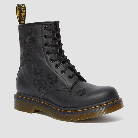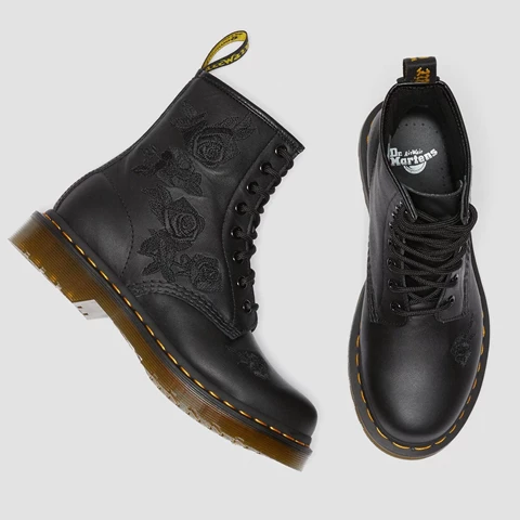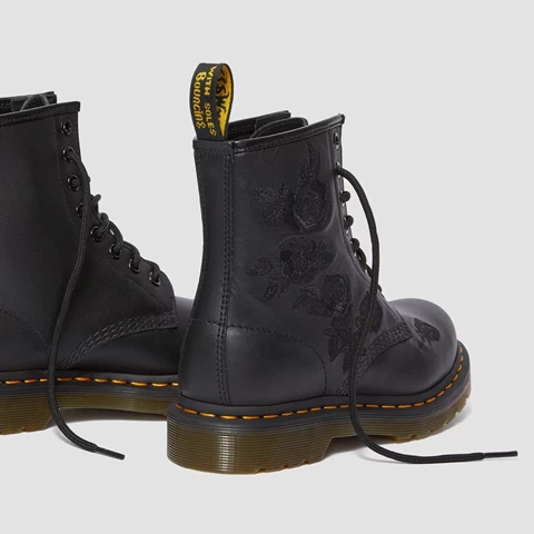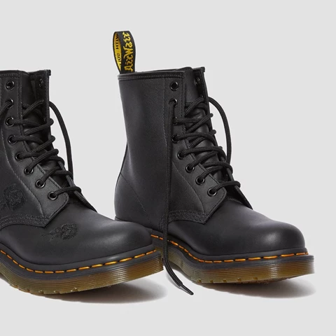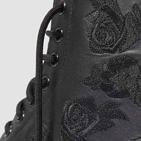 The 1460 was the first Dr. Martens boot — and this one is true to the original, but borrows style from the 14-eye 1914 Vonda. Black embroidered flowers cascade down the side of the boot, designed especially by our in-house creatives.