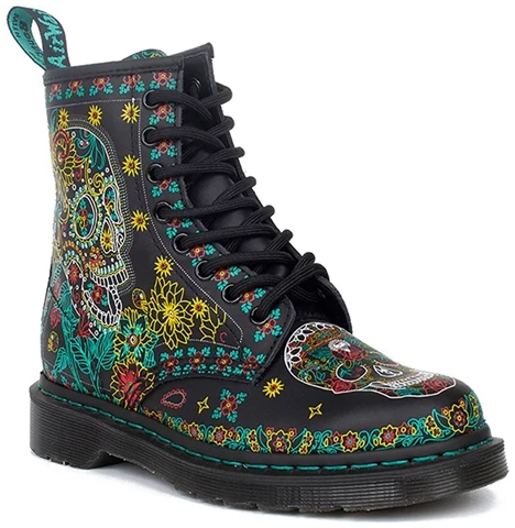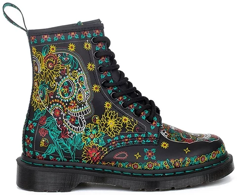 Drawing inspiration from the traditional Mexcian 'Day of the Dead' celebration, our 1460 Skull boot has been detailed with a loud, elaborate print from our in-house design team. Constructed with soft Backhand leather, this boot has all the instantly recognisable Docs DNA - grooved sides, a heel-loop, yellow stitching, and a comfortable, air-cushioned sole.