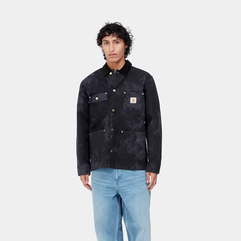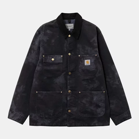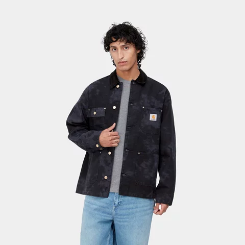 Der OG Chore Chromo Coat ist in unserer ursprünglichen lockeren Passform aus 12 oz Dearborn Canvas aus Bio-Baumwolle gefertigt. Er verfügt über einen digitalen Chromo-Druck, der von Tie-Dye inspiriert ist. Ein Kordkragen und mehrere Vordertaschen sorgen für taktile Akzente, während Dreifachnähte für zusätzliche Haltbarkeit sorgen. Ein Square Label auf der linken Brusttasche rundet das Design ab.