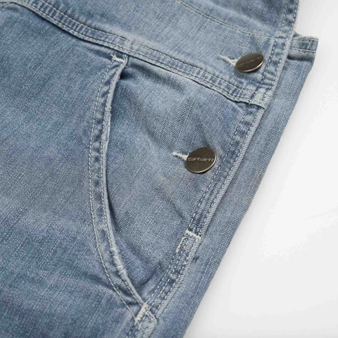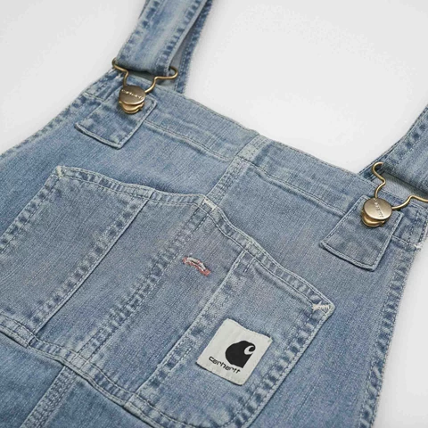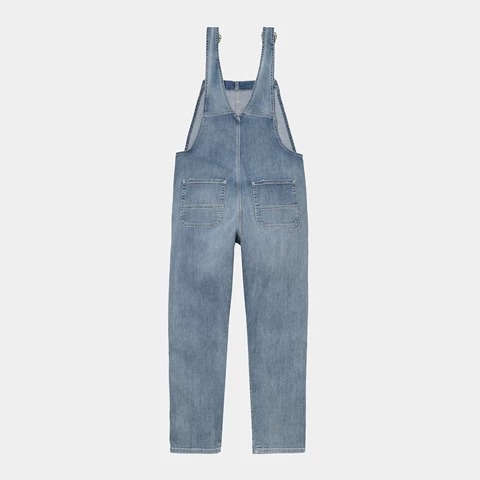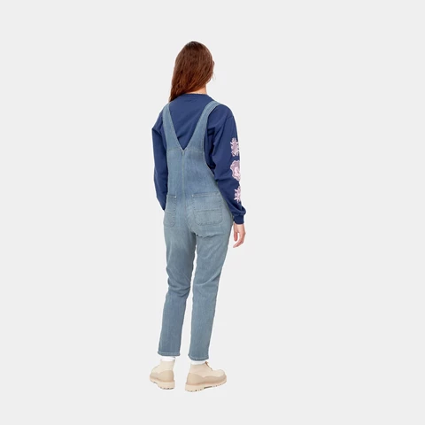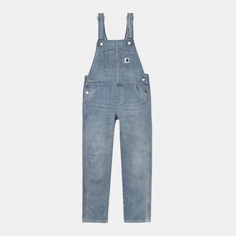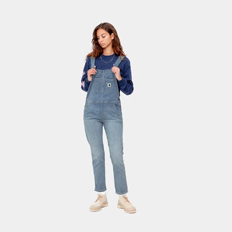 Der Damen-Latzhosen-Overall ist aus 9,6 oz Gallatin-Stretch-Denim, einem mittelschweren Stoff aus Bio-Baumwolle und Lycra®, in normaler, taillierter Passform geschnitten. Einige Varianten dieses Stils wurden gespült, um ein weicheres Gefühl zu vermitteln, andere wurden mit Steinwaschung behandelt, um ein subtiles, abgenutztes Aussehen zu erzielen. Der von der Arbeit inspirierte Stil zeichnet sich durch Kontrastnähte, mehrere Taschen und verstellbare Hosenträger aus. Das Kleidungsstück ist mit einem gewebten Square Label auf der Brusttasche versehen.