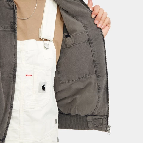 Die Santa Fe Bomberjacke für Damen besteht aus unserem schweren Stretch-Canvas mit hohem Baumwollanteil. Das Kleidungsstück verfügt über einen mit Baumwollpopeline gefütterten Körper, mit Nylon gefütterte Ärmel und Rippstrickbündchen an den Ärmeln und am Dreifachnähte sorgen für zusätzliche Haltbarkeit. Abgerundet mit einem gewebten Etikett auf dem unteren Band.